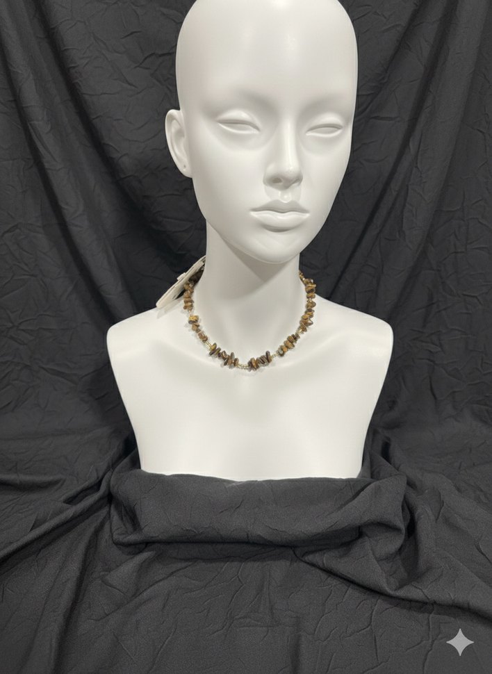 Bohem tarzda, boncuklu ve bağlama desenli koyu altın renkli midi uzunlukta kadın kolye. Günlük kullanıma uygundur. Kaplangözü doğal taş kolye✨