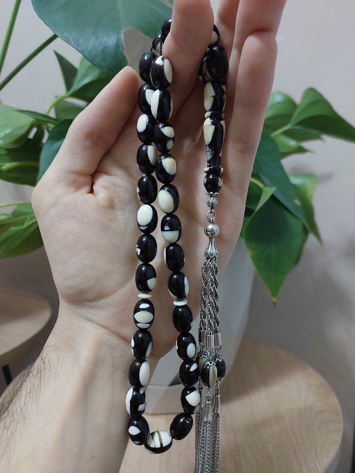Fil dişi ve kaplumbağa kabuğu birleşimi Koleksiyonluk Ağır gümüş tesbih Dünyada sayılır adet vardır