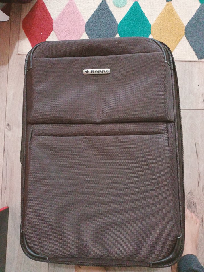 Kappa marka, kahverengi, düz desensiz erkek valiz. Tokalı detayları ile iş ve sokak stiline uygun.