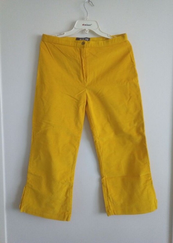 Çok güzel hardal sarısı renginde kapri kadife kumaş yanlardan yirtmaçlı alan güle güle kullansın