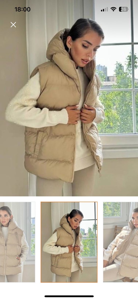 Kapşonlu cepli sisme yelek ici astarlı bej rengi