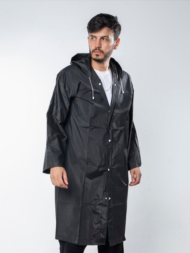 Kapşonlu Çıtçıtlı Eva Siyah Yağmurluk