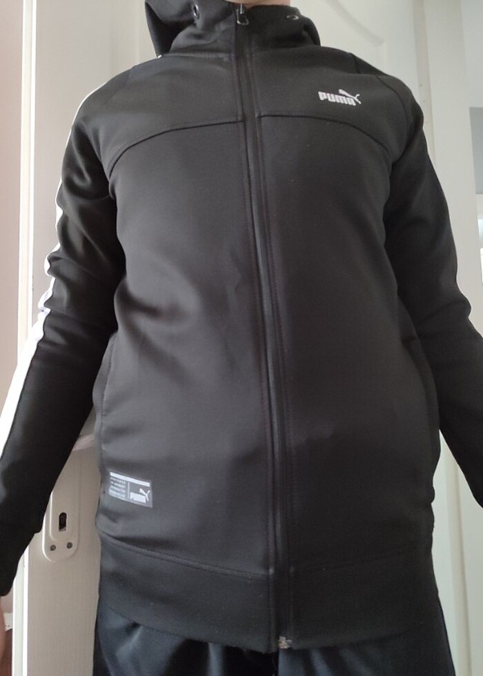 Kapşonlu sıyah hırka kollarında serıt detaylı