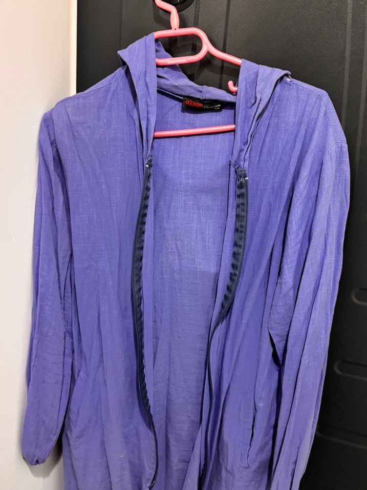 İnce yazlık cep detaylı kapşonlu hırka açık mor renk