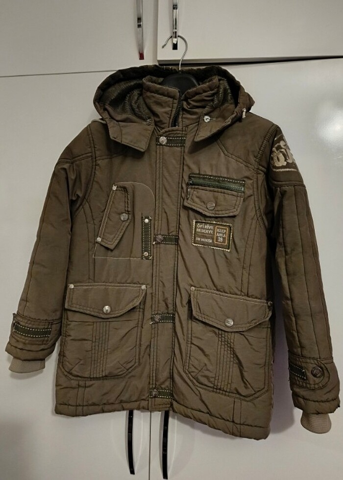#11-12yaş #11yaş #12yaş #hakiyeşil #kapşonlukaban #polarlı #kalın #kışlık fermuarı sağlam fakat ucunun demiri düşmüş, sağ cep çıtçıtının alt demiri yok. kullanıma engel herhangi bir sorun yok
