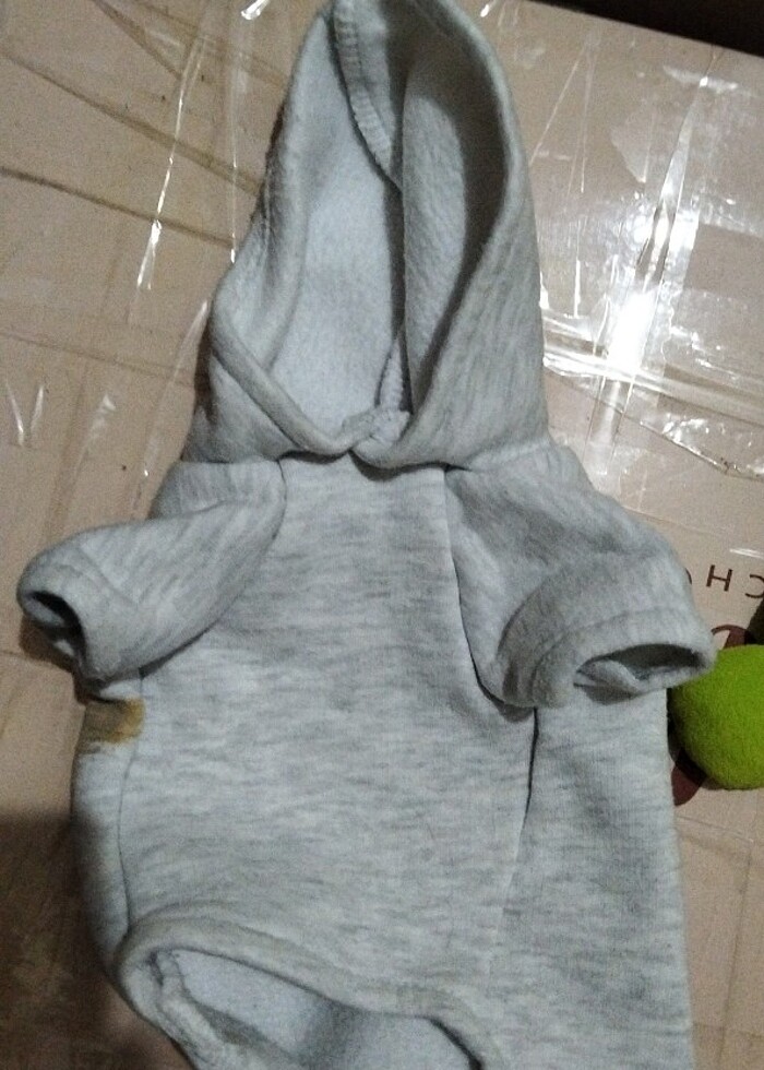 Kapşonlu kedi köpek kıyafeti resimde göründüğü gibi bir leke var onun dışında hiçbir sorunu yok