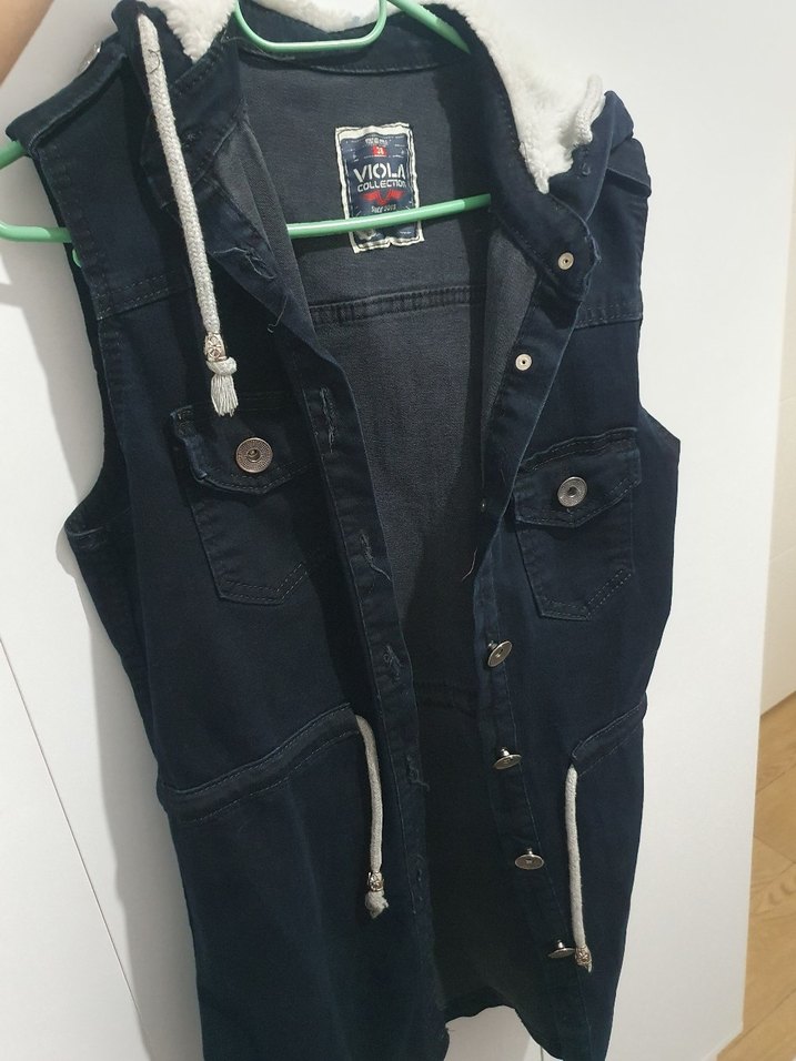 kapşonlu kot yelek
