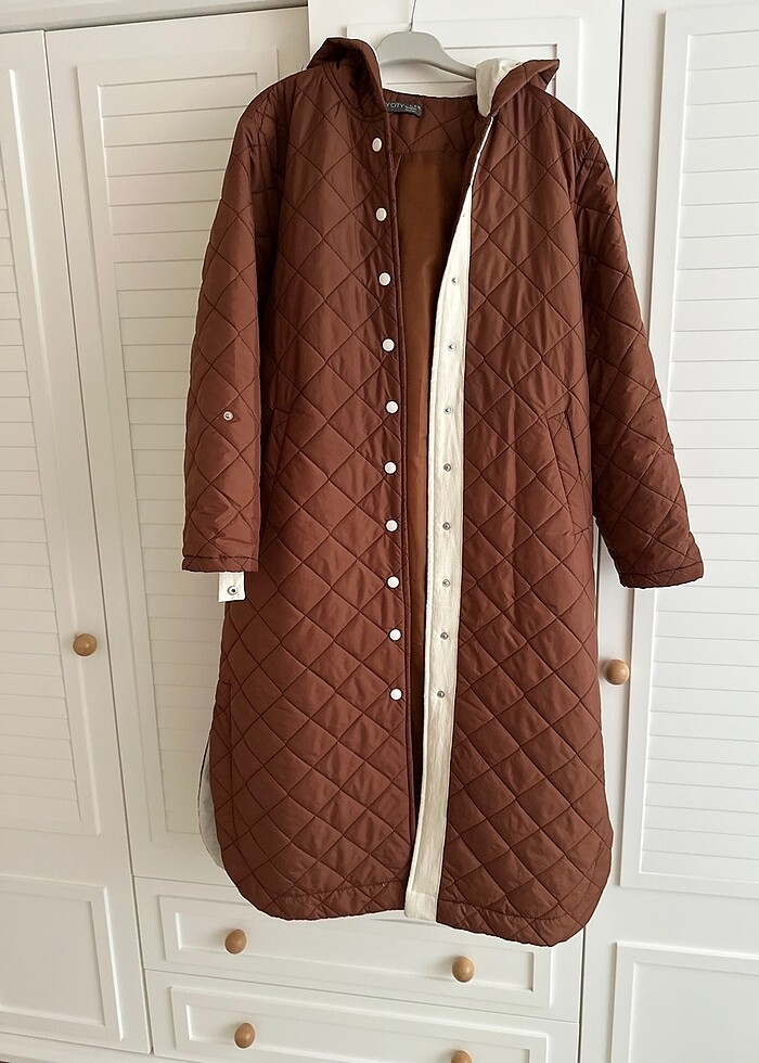 Boyu 120 cmdir. İnstagramdaki Milastill sayfasından aldım. Farklı montlarım da olduğu için sayılı giydim yepyeni duruyor. Kolları katlanabilir. Etek ucu yırtmaç detaylı. Kahve rengi mont. Bedeni L/XL dır.