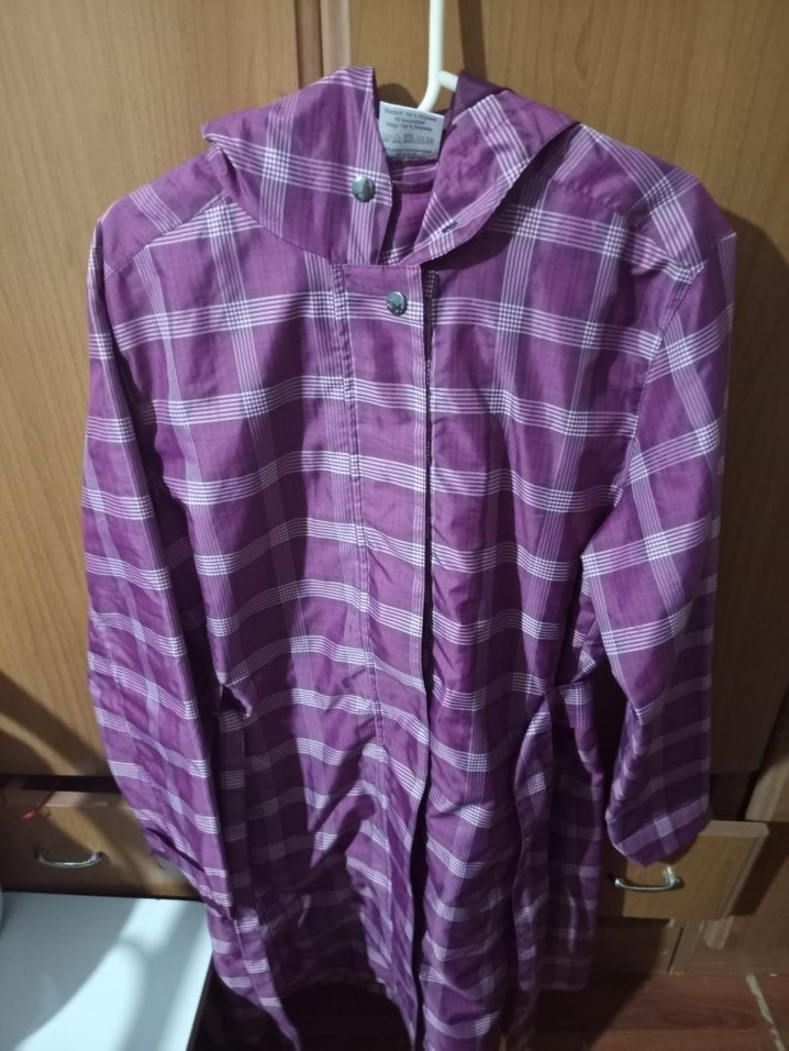 kapşonlu mor ekose yagmurluk