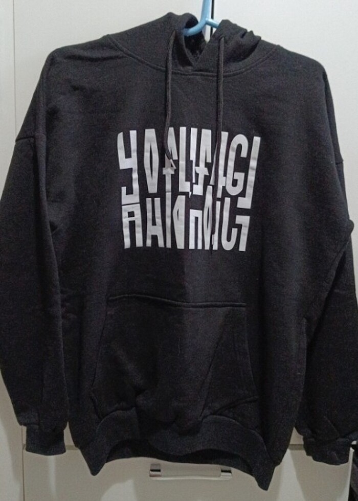 Siyah kapşonlu sivit önünde yazısı va yazıyı üzerine çektiğinde hanımcı yazıyor yeni sayılır 1 , 2 defa giyildi hiç bir yerinde deposu yok