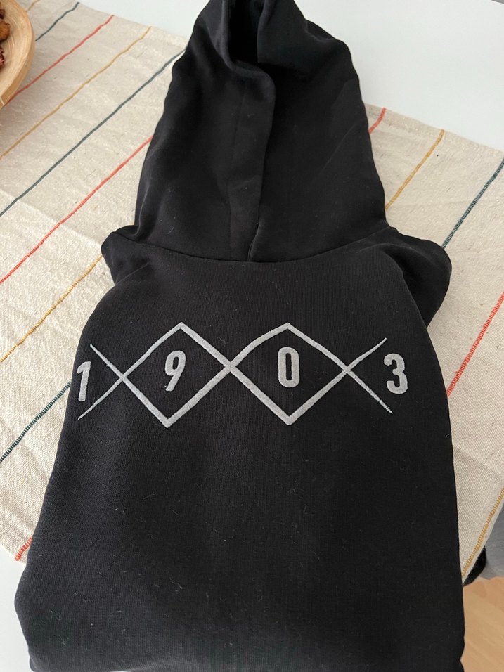 , 1903 baskılı siyah kapüşonu, 5/6 yaş uyumlu hiç giyilmedi