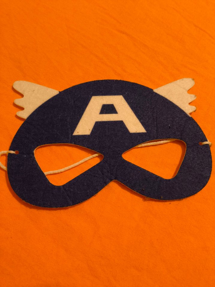 Kanat detaylı ve elastik bantlı Kaptan Amerika temalı erkek maske. Önünde büyük 'A' harfi bulunur. ♂️