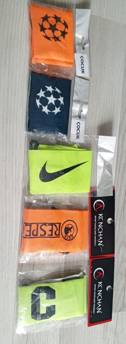 Velcro kapamalı, baskılı desenli, renkli plastik çocuk spor bileklikleri KCNCHAN markalıdır. ⚽