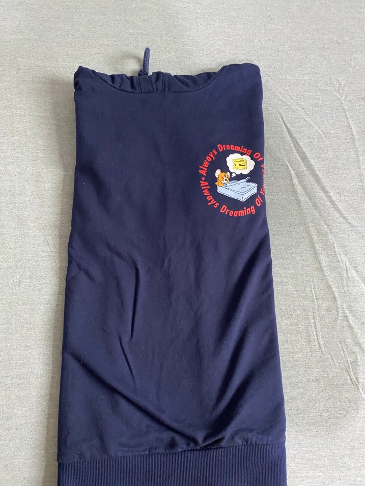 Kapüşonlu, fermuarlı, baskılı ve kolsuz hamile üstü. boyda, koyu mavi ve yumuşak kumaştan, günlük kullanıma uygundur.