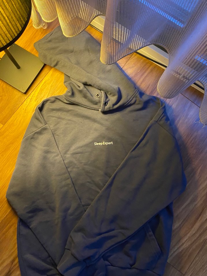 Bu koyu gri kapüşonlu sweatshirt, uzun kollu ve bol kesimdir. Göğüs kısmında baskılı logo bulunur ve yumuşak, rahat kumaştan yapılmıştır.