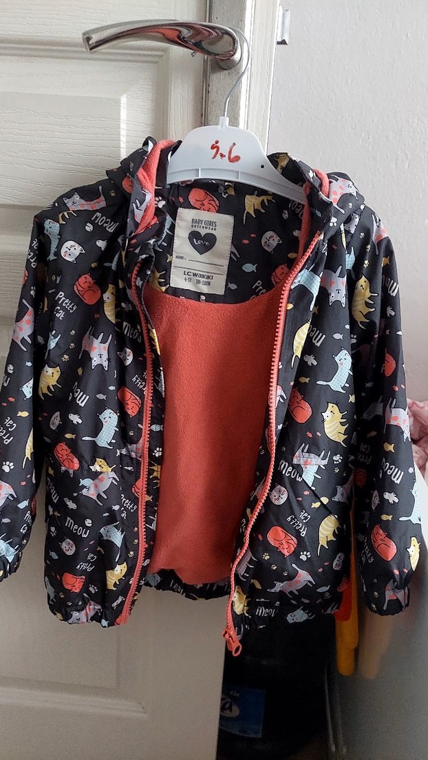 Kapüşonlu, fermuarlı ve bol kesimli kız yağmurluğu. Çok renkli baskılı tasarımı ve yumuşak iç kumaşıyla rahat kullanım sağlar. ️