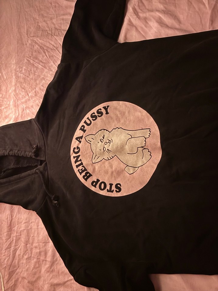 Kapüşonlu, uzun kollu, rahat kesim kadın sweatshirt. Kedi baskılı cesur grafik ve yumuşak, sıcak kumaş. Parlak kahverengi ton, dış mekan kullanımı için uygun.