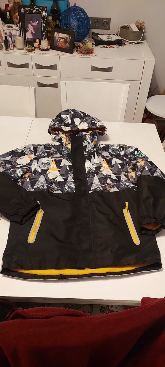 Yumuşak ve sıcak kumaştan, kapüşonlu ve yüksek yakalı erkek çocuk ceketi. Baskılı üst kısmı, fermuarlı cepleri ve bol kesimi ile rahat bir tarz sunar. Siyah renkte, sarı fermuar detaylıdır. ürün su geçirmez yurt dışından alınmıştı 11-12 yaş için uygun