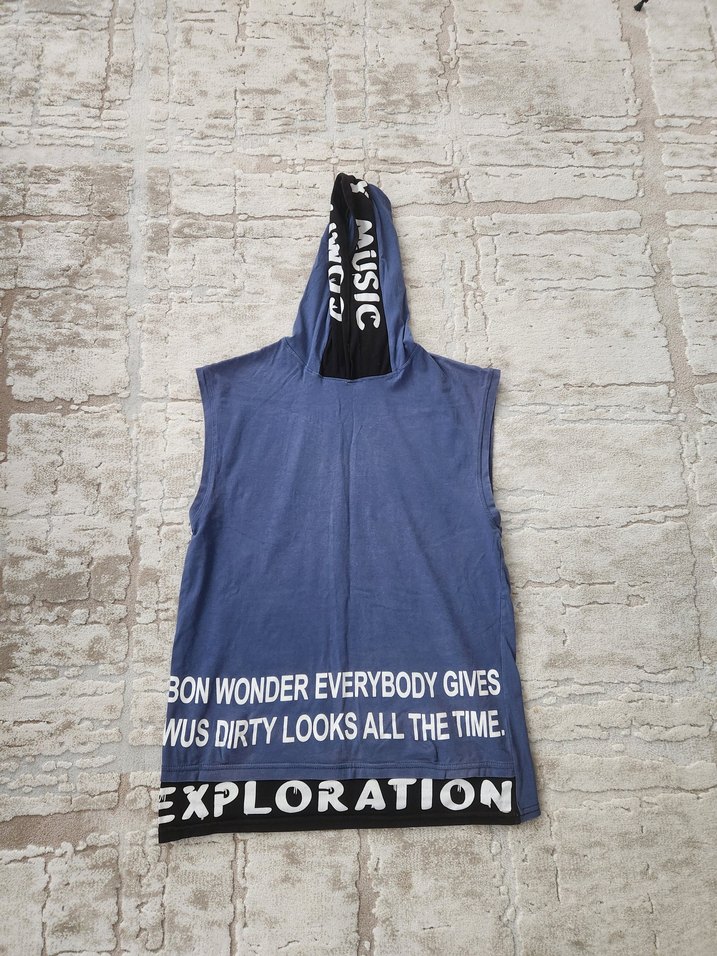 Kapüşonlu, bol baskılı tişört.Belli belirsizz bir küçük defosu var.S bedene uygundur.