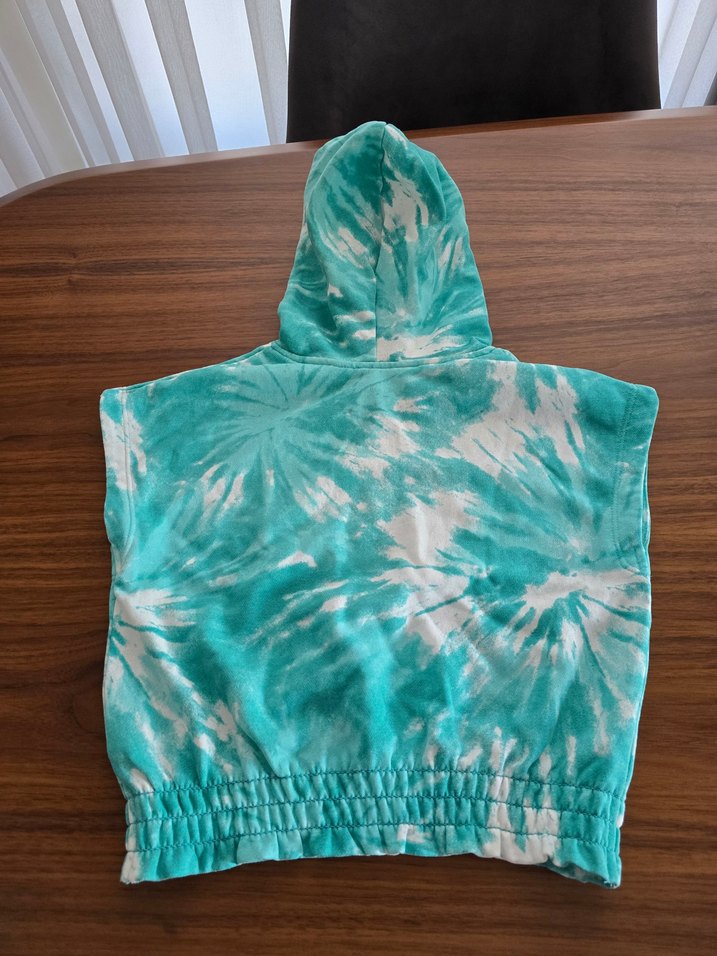 Kapüşonlu turkuaz batik desenli kız sweatshirt.