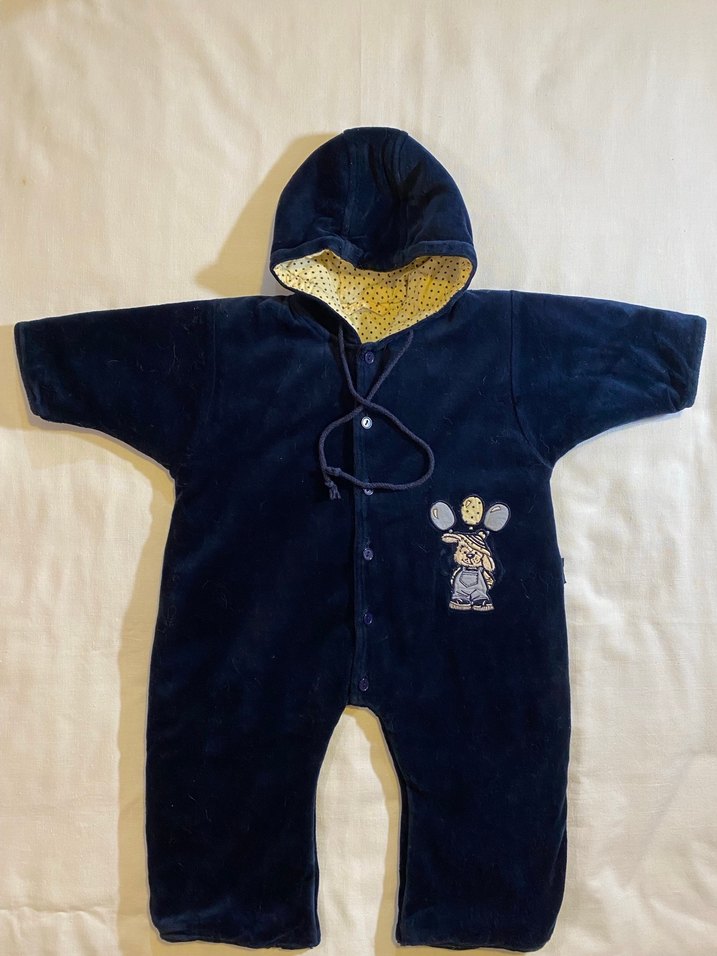 Kanz marka, Yumuşak kadife kumaştan, kapüşonlu ve renkli nakış detaylı lacivert bebek tulumu. Pamuklu yumuşak kumaştan astarı ve içindeki elyaf dolgu ile çok soğukta bile bebeğinizi sıcak tutar. ❄️ Ölçüleri fotolarda mevcuttur.