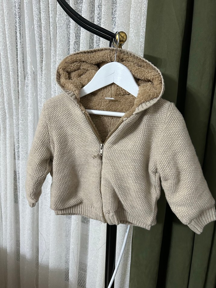 Kapüşonlu Bej Erkek bebek Hırka
