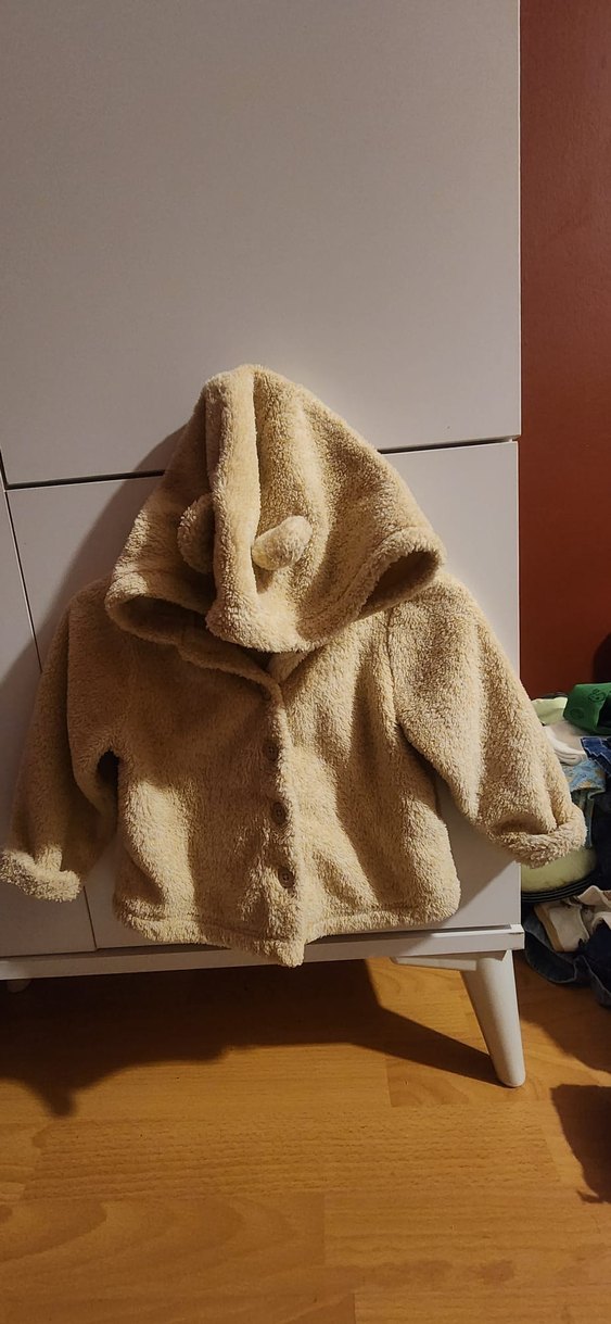 Bej renkli, kapüşonlu ve peluş detaylı erkek çocuk montu. Gevşek kesimi ve sade tasarımıyla sokak stiline uygun, yumuşak ve sıcak dokulu bir üründür.