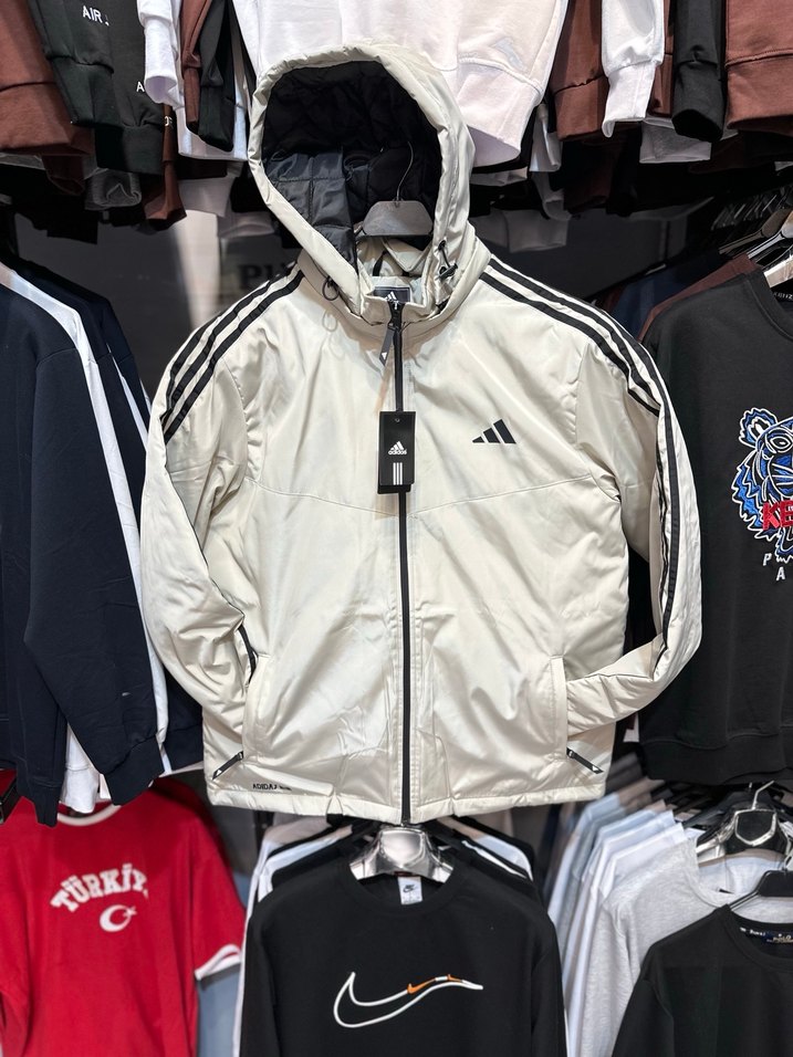 Kapüşonlu ve fermuarlı, siyah ve bej renklerde, sentetik kumaştan yapılmış, dar kesim erkek rüzgarlık ceket. Uzun kollu ve normal boyda, dış mekan için uygun. Bedenleri mevcuttur. İletişime geçebilirsiniz