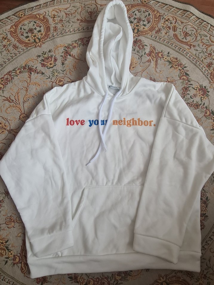 Trendyol alaçatı stili,oversize gibi görünen,ön kısmı yazılı baskılı sırt kısmı rengarenk melek kanadı baskılı olan kapüşonlu sweatshirt etiketli ve hiç kullanılmamıştır. Bedeni büyük geldiği için satıyorum. L bedendir. Marka temsili yazdım ilana.