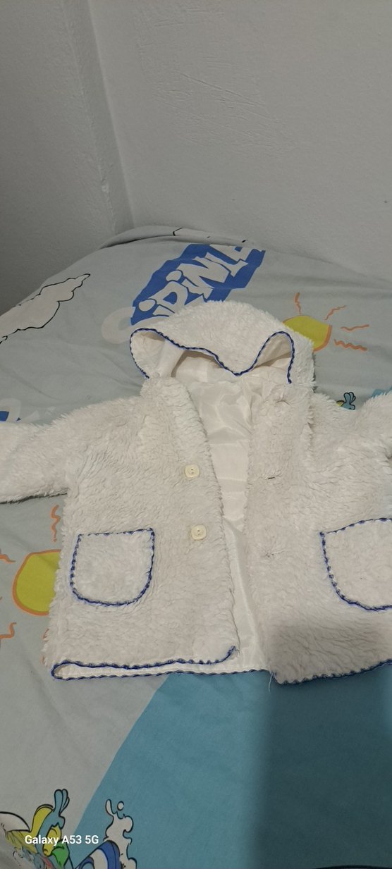 Kapüşonlu, renkli nakış detaylı, yumuşak ve sıcak kumaştan yapılmış, kürk detaylı erkek çocuk için dar kesim kaban.