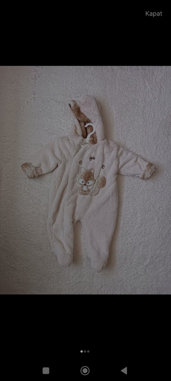 Kapüşonlu, kürklü ve pastel beyaz renkte, nakışlı desenli bebek tulumu. Sıcak tutar ve rahat kullanım sağlar. ❄️ içi dışı yumuşacık, çok rahat, sıcacık tutan bi mont, soğuklardan korur