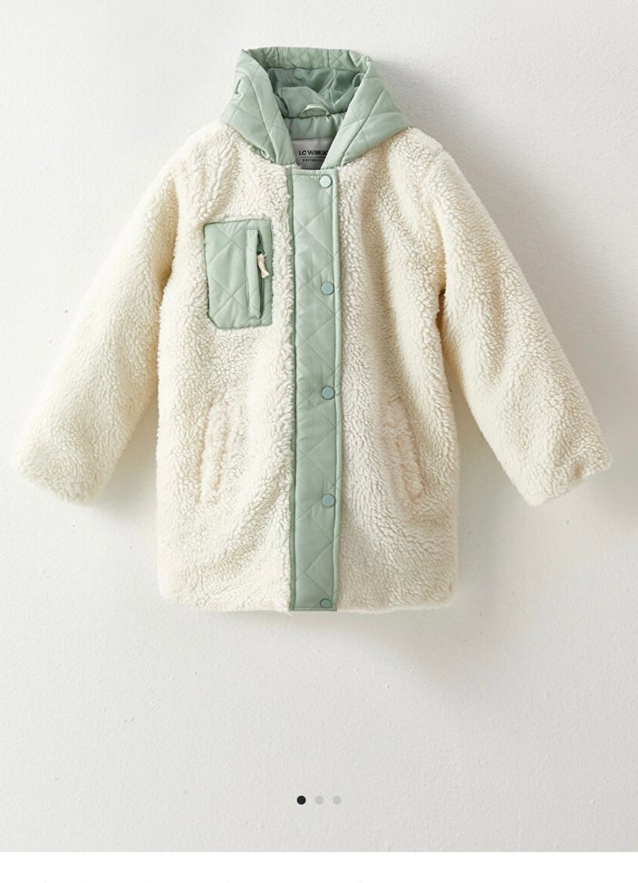 Tertemiz hiçbir sorunu yok bir sezon değişimli giyildi sıcacık tutuyor boyu omuzdan 71 cm kol boyu 53 cm iki kol arası 47 cm Kapüşonlu ve rahat kesimli kız montu, yumuşak ve sıcak kumaştan, kürk detaylıdır. Pastel yeşil kapitone ön panel ve cep ile sade bir sokak stili sunar.