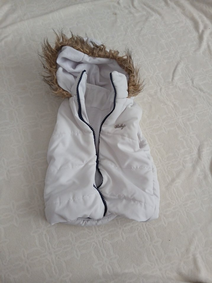 Kapüşonlu Beyaz Kürklü Yelek