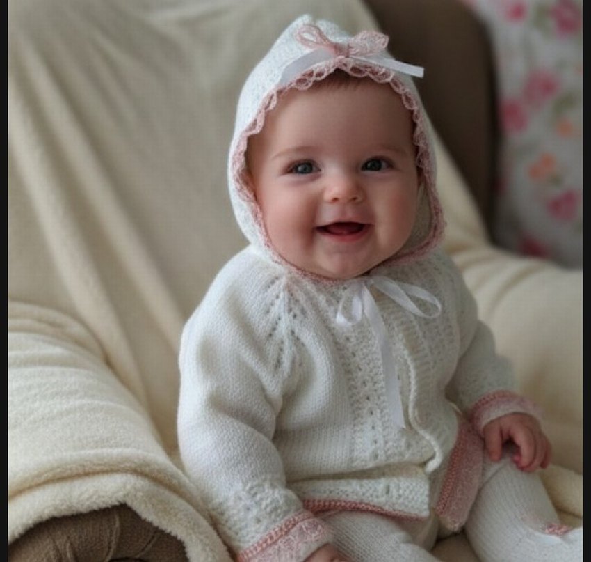 Kapüşonlu Beyaz Örgü Bebek Hırka ve yelek patikli takim