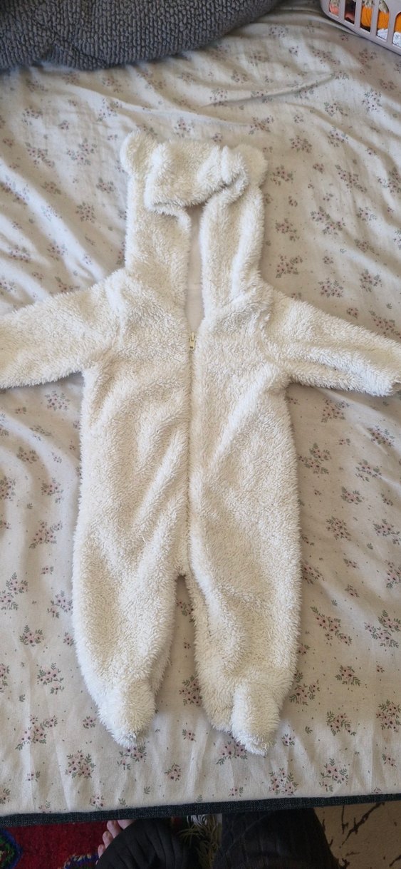 Kapüşonlu Beyaz Peluş Bebek Tulumu