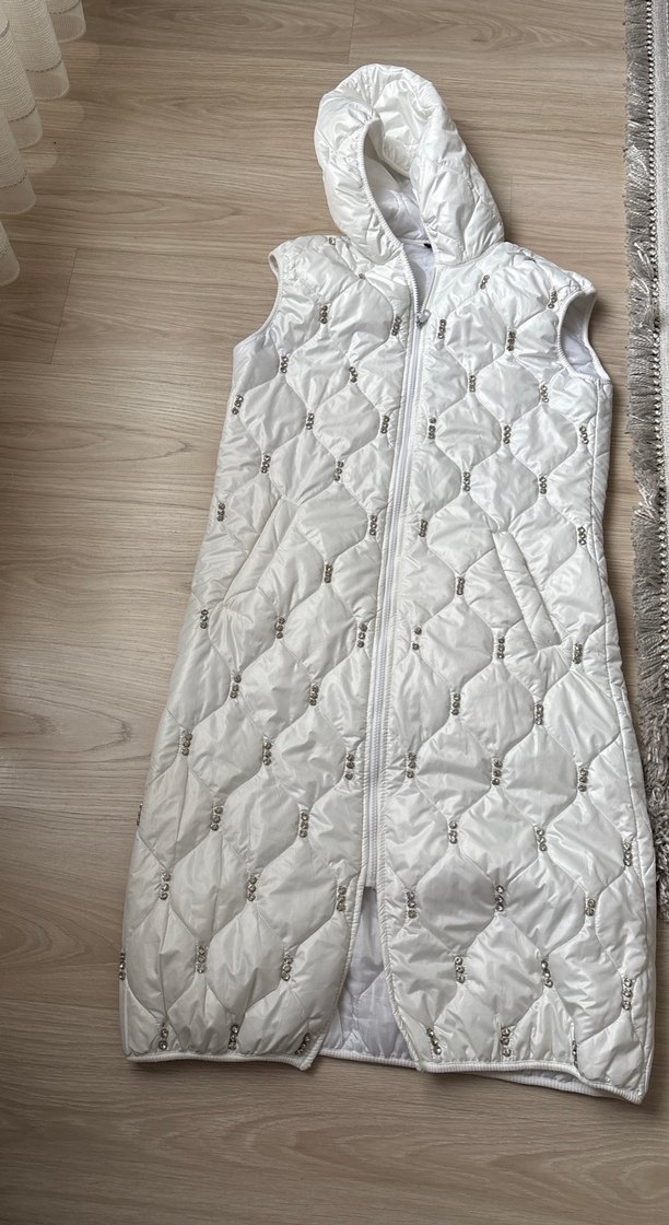 Kapüşonlu Beyaz Uzun Kadın Yelek