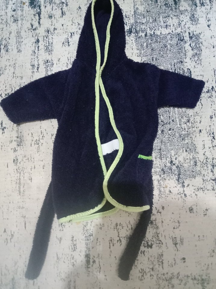 Yeşil şerit detaylı, kapüşonlu çocuk bornozu, yumuşak ve emici kumaştan üretilmiştir. Banyo sonrası kullanım için uygundur.