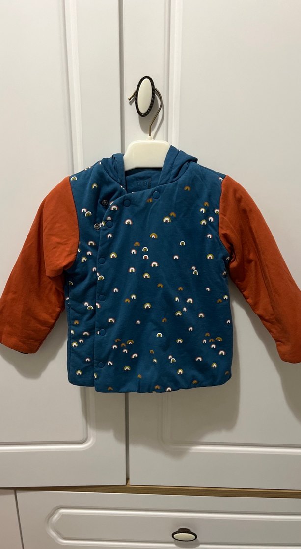 Kapüşonlu ve düğmeli erkek çocuk ceketi birkaç kez kullanıldı