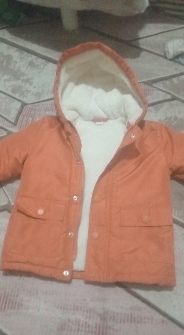 Pastel kahverengi, kapüşonlu ve düğmeli erkek çocuk montu, yumuşak ve sıcak kumaştan, rahat kesimle tasarlanmıştır.
