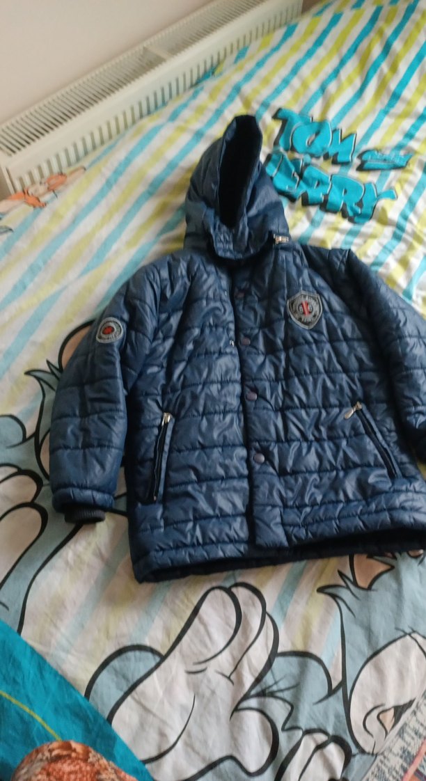 Koyu mavi renkli, kapüşonlu ve düğmeli erkek çocuk montu. Rahat kesimi ve işleme detaylarıyla, yumuşak ve sıcak kumaştan üretilmiştir.