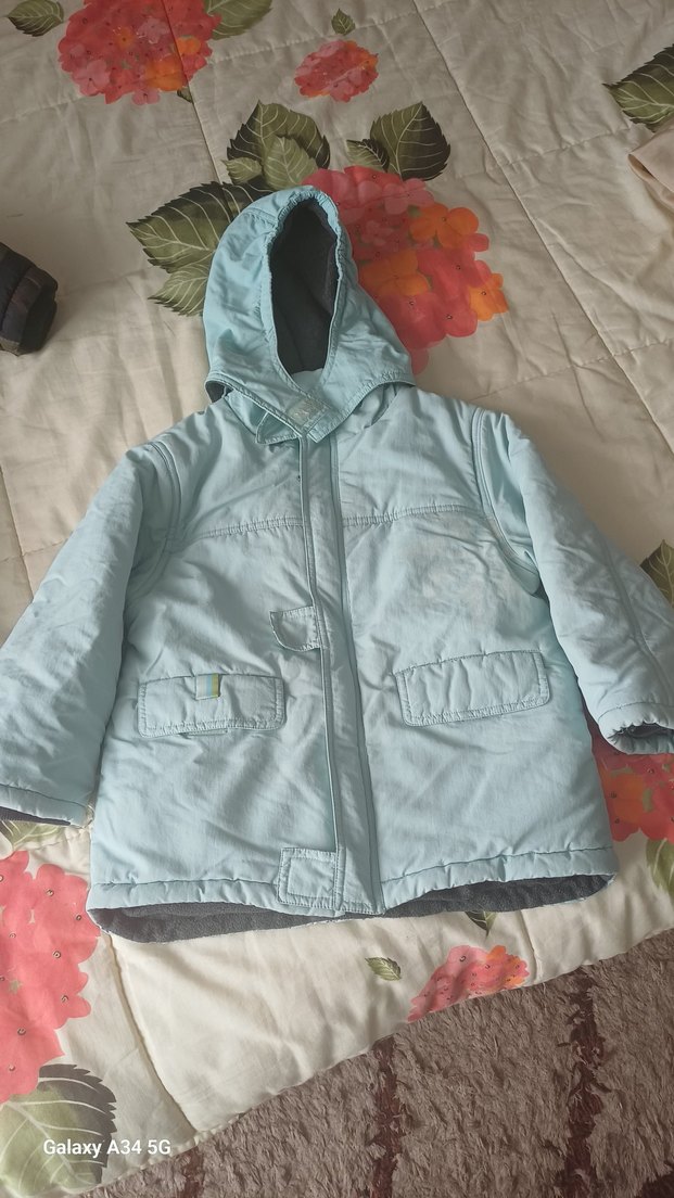 Kapüşonlu ve düğmeli buz mavisi erkek çocuk mont, rahat ve bol kesimdir. Yumuşak ve sıcak bir kumaştan üretilmiştir. kapüşonu çıkarılabiloyor temiz
