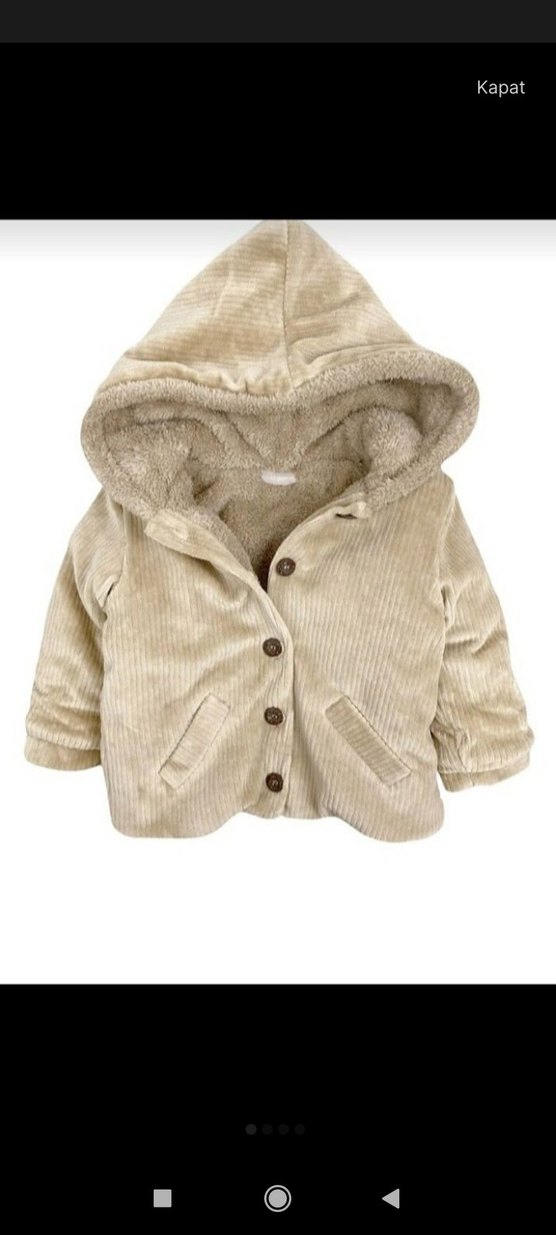 Bej renkli kız çocuk ceketi, kapüşonlu ve düğmeli olup, yumuşak ve sıcak kumaştan üretilmiştir. Salaş kesimiyle sokak stiline uygundur.