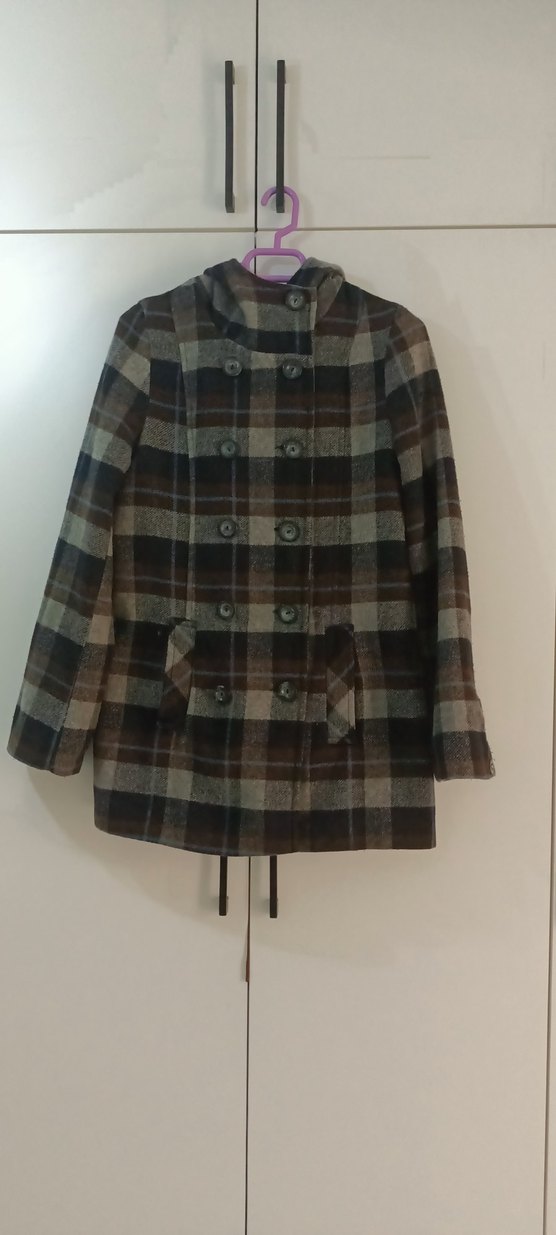 Kapüşonlu, çift düğmeli, cepli ve ekose desenli kaban, sıcak tutar ve şık görünür. 38 BEDEN,SON RESİMDE CEBİNİN YANINDA MİNİK BİR LEKE VAR YİKADİM ÇIKMADI ONUN DİSİNDA HİC BİR SORUNU YOK MARKA TEMSİLİ