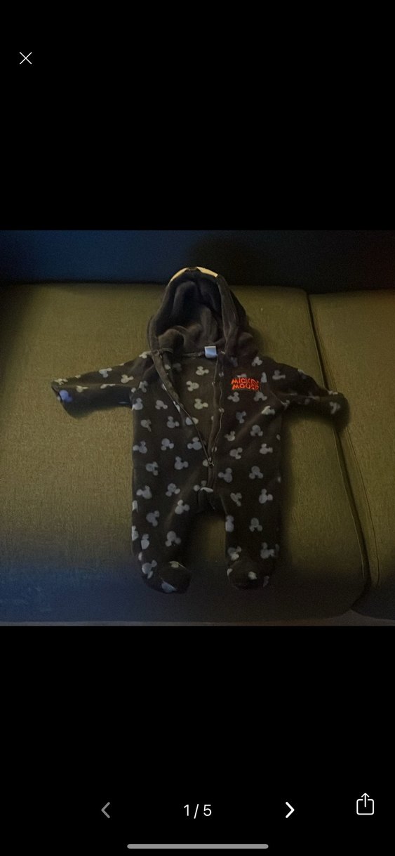 Yumuşak ve sıcak kumaştan, kapüşonlu ve fermuarlı, baskılı desenli koyu gri erkek bebek tulumu. İngiltereden Disney mağazasından alındı.