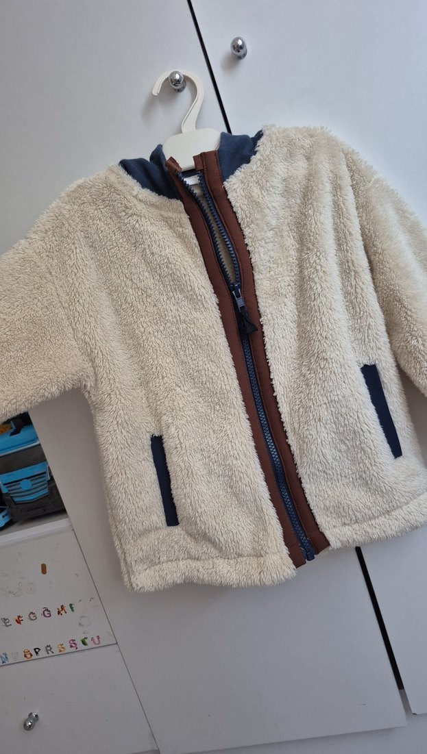 COK YAKIŞIYOR büyüğü olsa keşke , yine alırdım Bej renkli, kapüşonlu, peluş kumaştan yapılmış fermuarlı erkek bebek sweatshirtü, rahat kesim ve sokak stili için uygundur.
