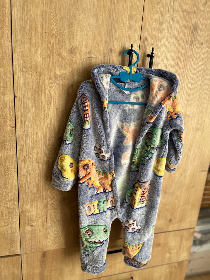 Dinazor desenli erkek çocuk tulum kapüşonlu ve yumuşacık 1 kere giyildi