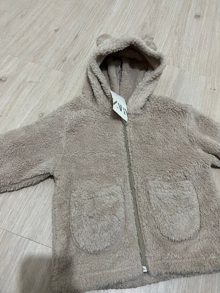 Kapüşonlu Erkek Çocuk Bej Peluş Mont