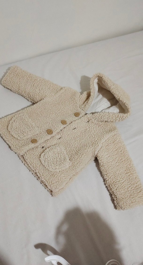 Kapüşonlu Çocuk Bej Triko Kaban