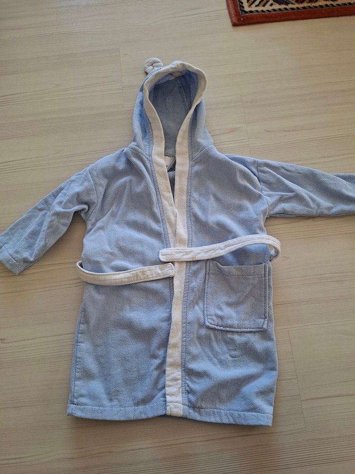 Erkek çocuk bornozu kapüşonlu, cepli ve Kemerli. Yırtık sökük yoktur. Yaşı tam gözükmüyor.86 sanırım. 2-3 yaş.Ölçüsünü son fotoya ekledim. 6-7 yaşa kadar kullanılır.