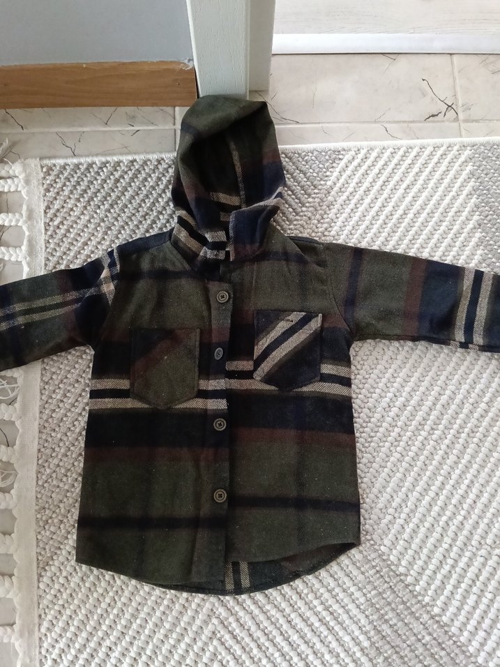 Kapüşonlu Erkek Çocuk Ekose Düğmeli Ceket
